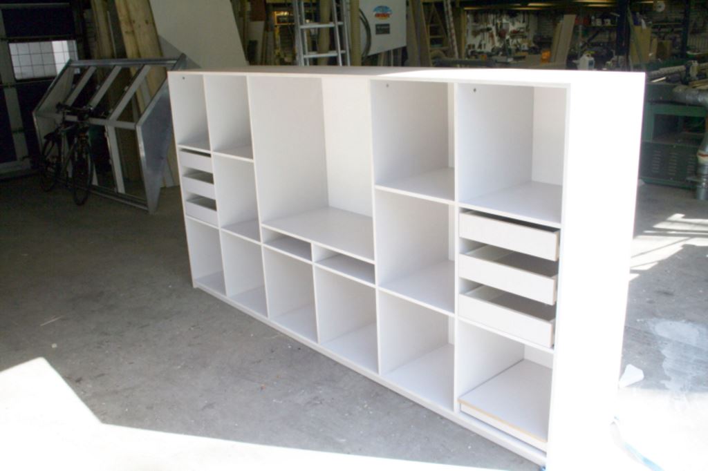 Met veel plezier heb ik een mooie maatwerk mediakast met veel opbergruimte gemaakt naar de specifieke wensen van de klant. De opdracht was een strakke kast te maken hoogglans wit afgewerkt. Vakverdeling gelijkmatig maar het middendeel moest gebruikt kunnen worden om de tv weg te werken.